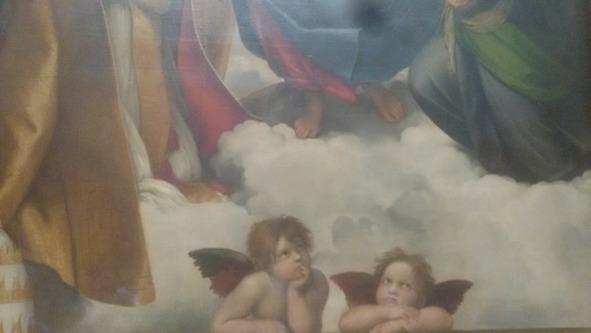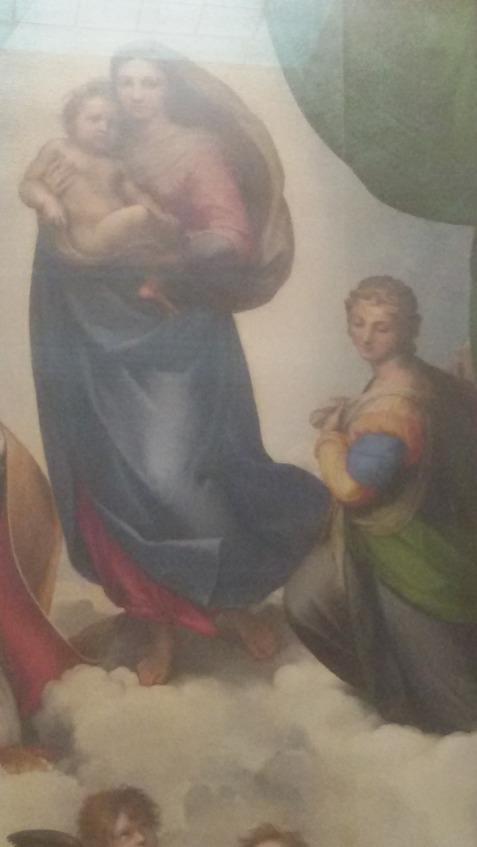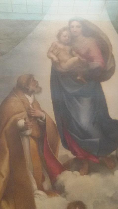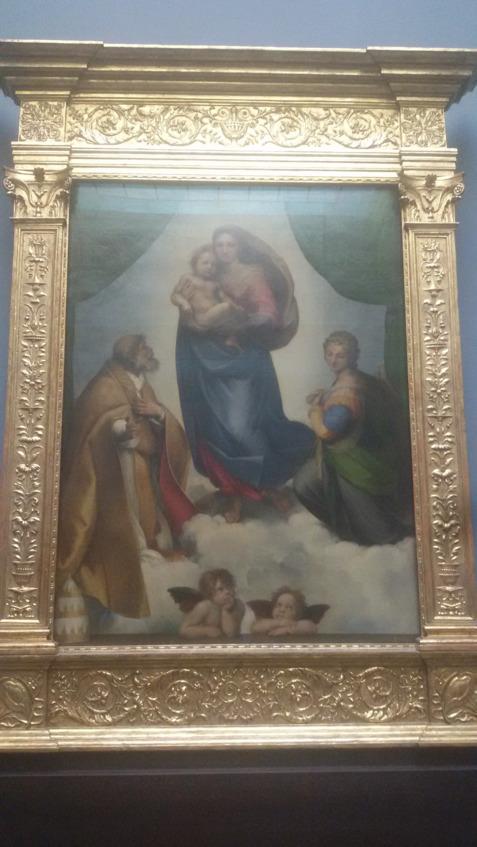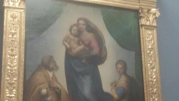 Наконец — истинной жемчужиной коллекции является «Сикстинская Мадонна»… Впечатление, которое производит живой взгляд на эту столь знакомую картину, трудно передать… Еще труднее выразить вихрь мыслей и переживаний…