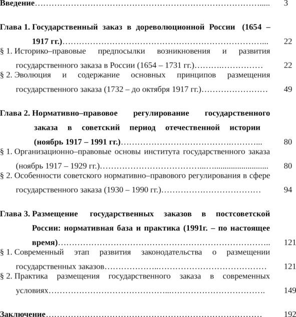Однако анализ имеющейся литературы привел автора к выводу, что, несмотря на значительное количество работ по избранной в диссертации историко–правовой проблематике, до настоящего времени еще не стало объектом специального комплексного изучения, в которых нашли бы комплексное, многоаспектное отражение проблемы становления и развития института государственного заказа в России в XVII — начале XXI вв., что и обусловило выбор темы данного исследования, его цель и задачи.