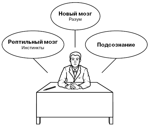 Одним из основных центров управления поведением людей является Центр обеспечения безопасности, назовем его Рептильный мозг. Он управляет инстинктами и заботится о нашей личной безопасности и о выживании людей в целом (название «Рептильный мозг» было предложено в книге Пола Маклина «Триединый мозг»).