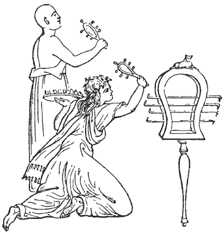 Мистический музыкальный инструмент, известный под названием «систр», вызывает большой интерес и с символической точки зрения является важным предметом. На его верхней части помещалась фигура священной кошки, эмблемы Луны, и той великой богини, которая воплощала в себе эту планету. Вероятно, ни один музыкальный инструмент больше не ассоциировался так широко с магическими и религиозными ритуалами, как древний систр. Египтяне, по всей вероятности, посвящали его богине Хатор, египетской Венере. Эта богиня на самом деле была популярной персонификацией Исиды в роли любящей и защищающей от бед матери всего живого и хранительницей душ умерших во время их путешествия в тоскливый подземный мир. Она регулярно отождествлялась с Исидой в надписях великого храма Хатор в Дендера, хотя меньший храм, особо посвященный Исиде, находится по соседству. Нигде больше мы не находим таких почестей, оказываемых священному систру, как в этом святилище Хатор, поэтому ясно, что он имеет особое значение по отношению к этой богине. Не трудно догадаться, что это именно так, поскольку кошка воплощает и иллюстрирует идеал матери.