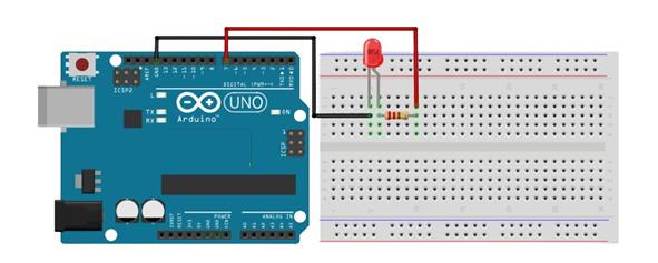 Arduinoga programma kodni yuklaganimizdan so’ng yorug‘lik diodini miltillashini ko‘ramiz. Agar qurilma ishlamasa sxema va programma to‘g‘ri uklanganligini tekshiring va xatolikni toping va yana bir ishlatib ko‘ring.