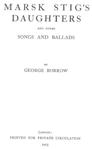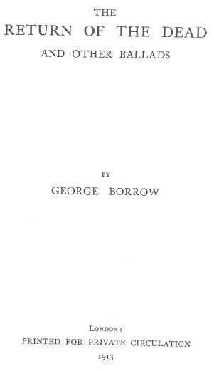 In 1826, when Borrow passed his Romantic Ballads through the Press, he had already acquired a working knowledge of numerous languages and dialects, but of his native tongue he had still to become a master. In 1826 his appreciation of the requirements of English Prosody was of a vague description, his sense of the rhythm of verse was crude, and the attention he paid to the exigencies of rhyme was inadequate. Hence the majority of his Ballads, beyond the fact that they were faithful reproductions of the originals from which they had been laboriously translated, were of no particular value.