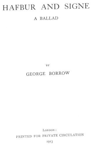 The object of the present Bibliography is to give a concise account, accompanied by accurate collations, of the original editions of the Books and Pamphlets of George Borrow, together with a list of his many contributions to Magazines and other Publications. It will doubtless be observed that no inconsiderable portion of the Bibliography deals with the attractive series of Pamphlets containing Ballads, Poems, and other works by Borrow which were printed for Private Circulation during the course of last year. Some account of the origin of these pamphlets, and some information regarding the material of which they are composed, may not be considered as inopportune or inappropriate.