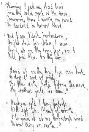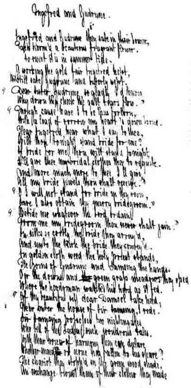 The Manuscripts themselves are of four descriptions. Firstly, the Manuscripts of certain of the new Ballads prepared for the Songs of Scandinavia in 1829, untouched, and as originally written; [0c] secondly, other of these new Ballads, heavily corrected by Borrow in a later handwriting; thirdly, fresh transcripts, with the revised texts, made in or about 1854, of Ballads written in 1829; and lastly some of the more important Ballads originally published in 1826, entirely re-written in 1854, and the text thoroughly revised.