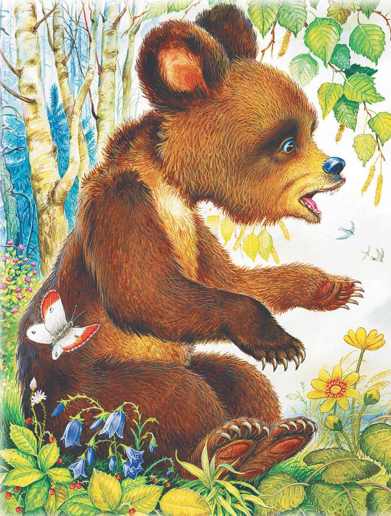Но о-ни́ о-ши́б-лись: э́-то был все-го́ то́ль-ко мед-ве-жо́-нок. Е-щё про́ш-лым ле́-том он впри-ско́ч-ку бе́-гал за ма́-терь-ю–мед-ве́-ди-цей, а э́-той вес-но́й стал жить сам по се-бе́, сво-и́м у-мо́м: ре-ши́л, что он у-же́ боль-шо́й.