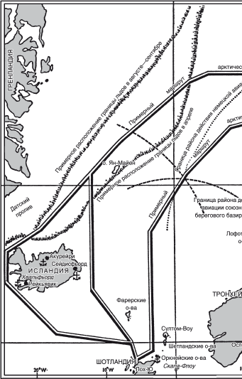 Первоочередной задачей флота метрополии, базировавшегося в Скапа-Флоу, до этого времени был перехват любых немецких кораблей, желавших выйти в Атлантический океан на судоходные пути союзников. Достаточно взглянуть на карту, чтобы понять: после захвата немцами Норвегии задача стала намного сложнее. Расстояние между северо-западным побережьем Шотландии и юго-восточным берегом Исландии – 330 миль, а Датский пролив, разделяющий Исландию и Гренландию, хотя временами сужается льдом, все-таки имеет ширину 180 миль. Побережье Норвегии и Шетландские острова разделяет 160 миль. Хотя одновременно с Норвегией немцы оккупировали Данию, к счастью, они не сделали попытки захватить ее зависимые территории – Исландию и Фарерские острова.