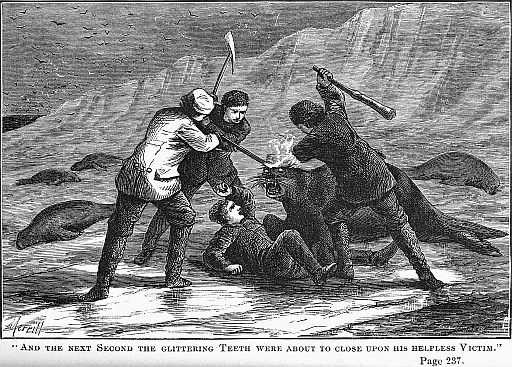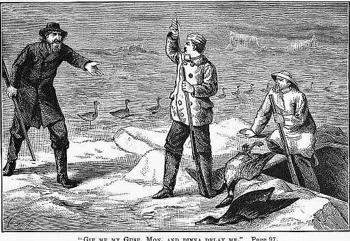 Davies the elder, an old friend of the foregoing, had for many years been accustomed to leave his store and landed property to the care of his partners and family, while, in company with Risk, he found in the half-savage life and keen air of the ice-fields a bracing tonic, which prepared them for the enervating cares of the rest of the year. The two had little in common—Risk being a stanch Episcopalian, and Davies an uncompromising Methodist. Risk, rather conservative, and his comrade a ready liberal; but they both possessed the too rare quality of respect for the opinions of others, and their occasional disputations never degenerated into quarrels.