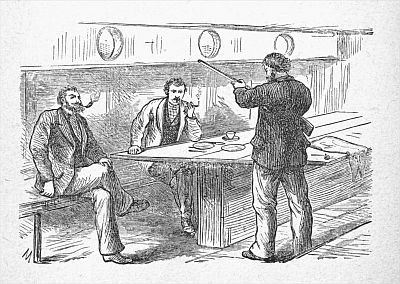 After supper, however, on this first evening, an unwanted cloud hung over the brow of the host, which yielded not to the benign influence of four cups of tea, and eatables in proportion; withstood the sedative consolations of a meerschaum of the best "Navy," and scarcely gave way when, with the two eldest of the party, he sat down to a steaming glass of "something hot," whose "controlling spirit" was "materialized" from a bottle labeled "Cabinet Brandy." After a sip or two, he hemmed twice, to attract general attention, and said, solemnly,—