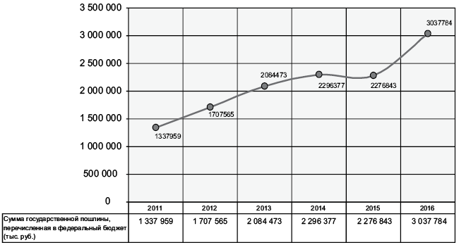 Сумма государственной пошлины, перечисленная в федеральный бюджет (тыс. руб.)