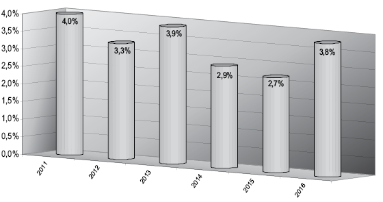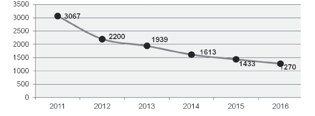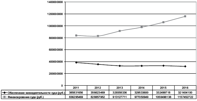 Несмотря на увеличение нагрузки судей, финансирование (стоимость) одного рассмотренного дела с 3067 руб. в 2011 г. уменьшилась до 1270 руб. в 2016 г. Вместе с тем качество судебных актов (с учетом динамики отмененных вышестоящими судами) сохраняется на высоком уровне.
