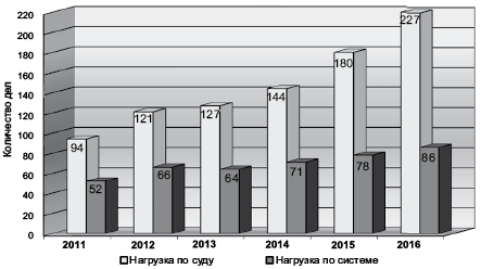 Сравнительный анализ нагрузки судьи по итогам работы Арбитражного суда г. Москвы и арбитражных судов субъектов РФ (по системе) за 2010–2016 гг. выглядит следующим образом: