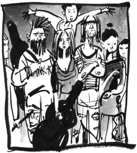На самом деле чаще всего бывает так: я сейчас пойду, сделаю кучу маленьких дел, вычёркивая их из головы по одному. Это вроде как позволяет собой гордиться – вон сколько сделано! А по-настоящему большие дела, вроде задолженности по сольфеджио, так и останутся незавершёнными. А если меня занесёт к Банде, то вообще всё. Пропал день. Никаких дел, ни больших, ни малых, ни совсем крошечных. Только Банда.