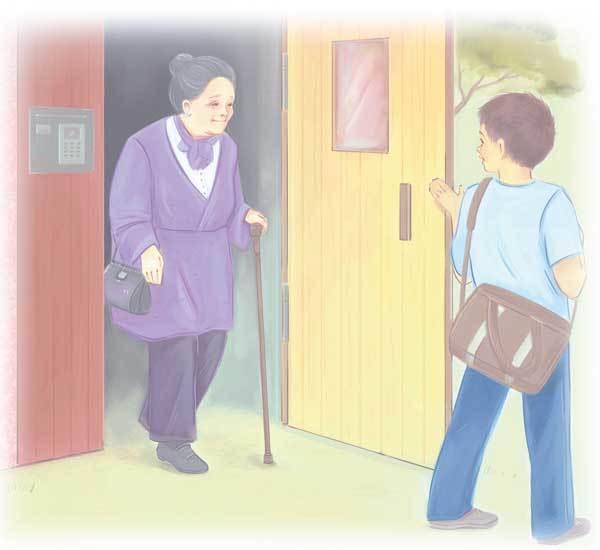 У выходной двери Петя обогнал бабушку с палочкой. Он очень торопился, и хотел проскочить мимо. Но потом подумал: одна минута не решит дела, а потом будет стыдно вспоминать, как хлопнул дверью перед самым носом бабушки! Остановился и придержал дверь.