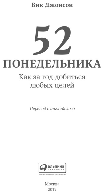 52 понедельника: Как за год добиться любых целей / Вик Джонсон; Пер. с англ. — М.: АЛЬПИНА ПАБЛИШЕР, 2013.