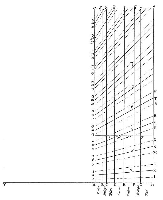 Qu. 14. May not the harmony and discord of Colours arise from the proportions of the Vibrations propagated through the Fibres of the optick Nerves into the Brain, as the harmony and discord of Sounds arise from the proportions of the Vibrations of the Air? For some Colours, if they be view'd together, are agreeable to one another, as those of Gold and Indigo, and others disagree.