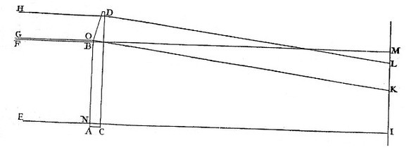 Much after the same manner, if ACBD [in Fig. 3.] represent a Glass spherically convex on both sides (usually called a Lens, such as is a Burning-glass, or Spectacle-glass, or an Object-glass of a Telescope) and it be required to know how Light falling upon it from any lucid point Q shall be refracted, let QM represent a Ray falling upon any point M of its first spherical Surface ACB, and by erecting a Perpendicular to the Glass at the point M, find the first refracted Ray MN by the Proportion of the Sines 17 to 11. Let that Ray in going out of the Glass be incident upon N, and then find the second refracted Ray Nq by the Proportion of the Sines 11 to 17. And after the same manner may the Refraction be found when the Lens is convex on one side and plane or concave on the other, or concave on both sides.