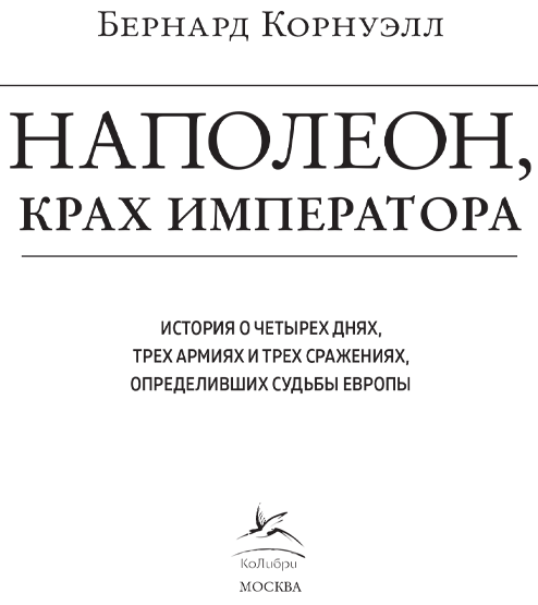 Наполеон, крах императора : История о четырех днях, трех армиях и трех сражениях, определивших судьбы Европы / Бернард Корнуэлл ; [пер. с англ. И.О. Летберга]. — М. : КоЛибри, Азбука-Аттикус, 2022.