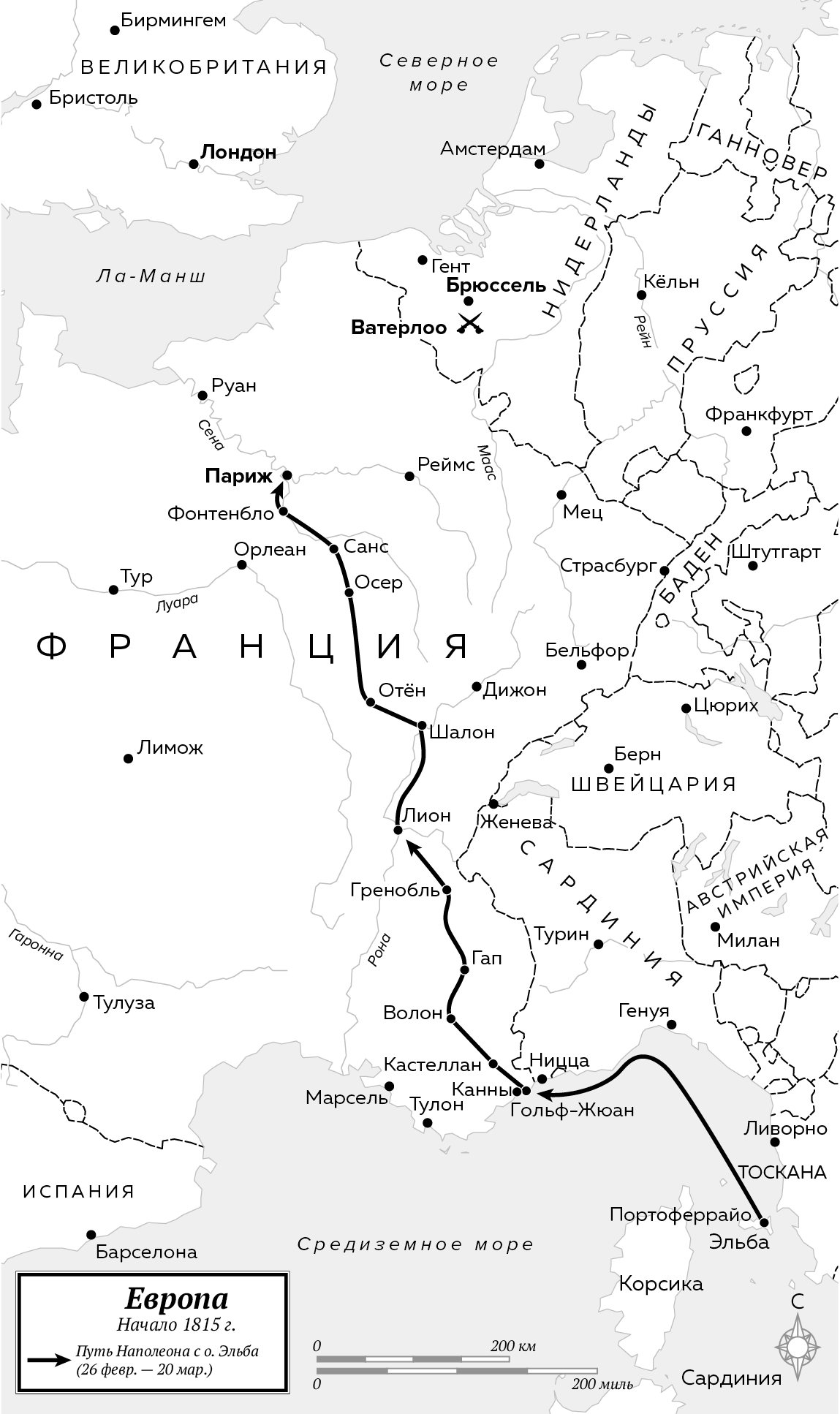 Талейран был прав, а вот британский уполномоченный, отправленный на остров Эльба приглядывать за императором, ошибся. Сэр Нил Кэмпбелл счел, что Наполеон смирился со своей участью, и даже написал об этом лорду Каслри, британскому министру иностранных дел. «Я начинаю думать, — писал Кэмпбелл, — что он уже вполне признал свое поражение».