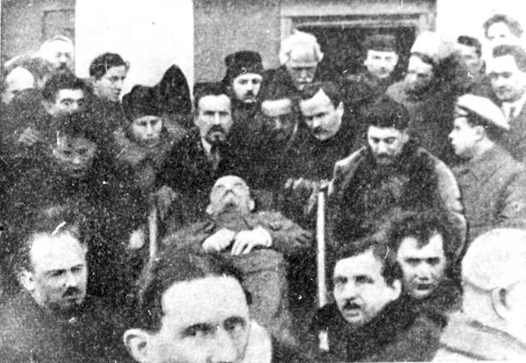 Соратники выносят гроб с телом Ленина из дома в Горках