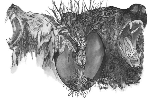 — Много дворов полных было в нашей деревне, всего всегда в избытке и в достатке. Не смотри, что лесом село обнесено, мужик наш добычливый, всякий раз не пустой возвращался. Повадился как-то шатун по околотку слоняться, скотину валил, житницы рушил. А один раз на поселянина ночью напал, помял немного, да бросил. Тем и споганил души наши, грех взяла на себя деревня. Вышли охотники, загнали, да ушибили. Хотели было освежевать шатуна, а из утробы его медведята полезли. Что делать? Своротили и их… Да видно, не мирские то были медведи, а заговоренные. С тех пор лихо пошла жизнь наша. Скотина и птица издохли, амбары заполонила шушара, люд стал хворать и сумасбродить. Решили тогда сельчане покинуть деревню, скоро засобирались, да по весне и ушли. Наш двор только остался, мать сделалась хворой. Отец с братом и до того не часто ласкою нас окружали, а тут и совсем истязать стали и требовать. Доставалось мне дюже, до слез, до изнеможения. Мать на поправку не шла, совсем ослабела, не выходила из хаты, все перхала, много молилась. Тогда мужики в путь и пустились, за лекарем, говорили, за подмогой. Я же осталась с больной, да меня и не звал никто с собой — обуза, да хлопоты. Мать скоро целыми днями стала с закрытыми глазами лежать, близко не подойдешь: пропастиной пахнет, протухла вся изнутри. А там как-то ночью пошла у ней горлом кровь, и осталась я сирой. С тех пор много всего утекло, весна прошла, лето сменилось осенью, зима теперь на исходе, а мужиков своих я боле не видала, и ждать уж отказалась, то ли не дошли, да верно, просто покинули. И ты пропадешь… Верно дед говорил, что сила какая-то злобу затаила на меня за красоту мою, да за нрав скромный… — и Ждана заплакала, закрывшись ладонями.