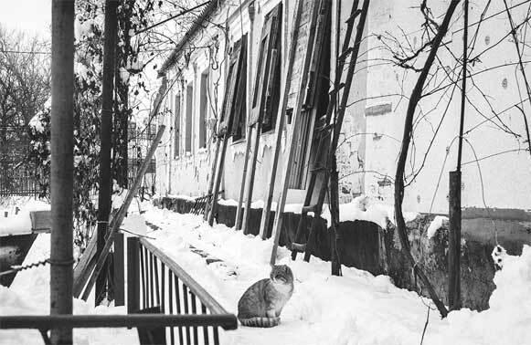 Зимний Коминтерново впечатлял: засыпанные снегом развалины домов, раздробленные стены зданий, прострелянные и поржавевшие знаки и указатели, пробивающиеся сквозь белое одеяло серо-коричневые ростки, обгоревшие столбы деревьев, торчащие из земли бетонные столбы напоминали снаряды от «Града». На этом фоне то и дело появлялись одинокие фигуры стариков, которые кочевали по территории поселка. Заметил старика, который подошел с ведром к колодцу и собрался набрать воды, а за его спиной стояла опустевшая постройка с зияющими дырами и пробитой крышей.