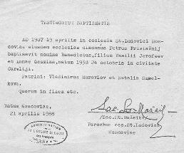 Справка о крещении Вен. Ерофеева в костеле Святого Людовика