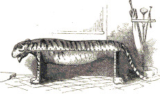 The Browns are next door:—Victoria is fraternizing with Albert, and both are exceedingly happy, although the latter has won greatly at the game of speculation—having played his cards well; so, Mr. Brown, after being packed in brown paper, steeped in vinegar, and well soda-watered, joins the social party;—finding Captain de Camp busy concocting an extraordinary oriental mixture (the name of which we quite forget) out of old bottles, from Victoria’s cellar; and telling a tremendous Eastern story of a tiger captured in a jungle, after a chase of ten hours—he should have said minutes, in a penny magazine!