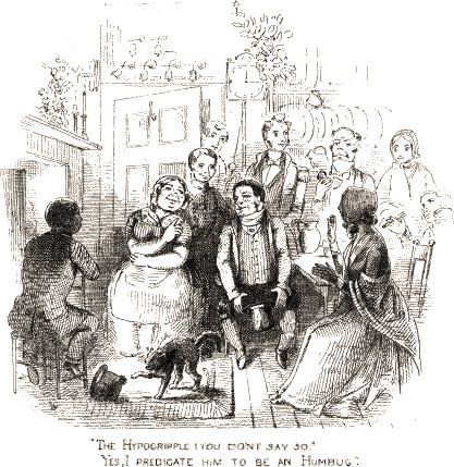 Mr. Brown and the Captain soon became familiar—in twenty minutes you would have thought them friends of twenty years:—so,—before the last speculator had invested his last weekly sixpence in a goose-club, and drawn the last adamantine old gander; or the last Christmas-pudding-sweep swept away the chimerical puddings, that ought to have been very rich, and everybody thought everybody else had won; before the last trader, who had sold out, dared to mount a notice, intimating that he had joined an “Association to suppress Christmas-boxes,”—the Browns and De Camps had attained that state denominated “thick”—an appellation that might, with propriety, have been applied to Mr. Brown’s brains;—for he had obliged Captain de Camp by discounting a bill, due twelve days after date (Christmas), and had invited him to dine on the morrow, to partake of the poultry, that always came up at Christmas, from Plumpsworth; and was taken out in a visit made by the worthy donor, Great-uncle Clayclod, during the “May-meetings,” when he does a dozen shilling exhibitions in a day, and knocks up a fly-horse. So, rather late to bed; Mr. Brown making up his Diary, as usual, on the dressing-table—a rule he always observed, though, in some cases, it would have been better left until the morning; for, against December 24th, Tuesday, we find his feelings richly expressed in cramped