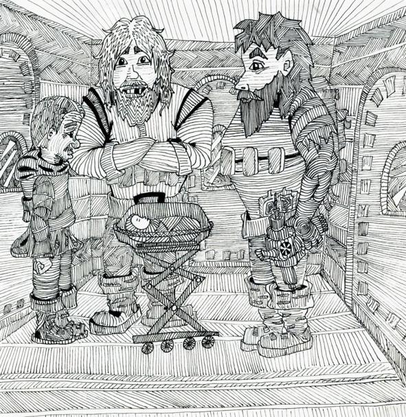 В кабину управления ворвались три вооружённых пирата. Все были невероятно крупными, но их предводитель был поистине гигант. Создавалось впечатление, что всех троих неведомая сила намеренно увеличила в размерах.