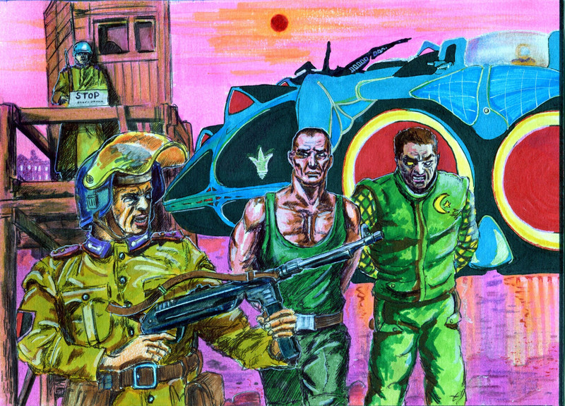 Открыв глаза, Макс осмотрел комнату в которой находился. Рядом с ним за столом сидели два инопланетянина и о чём-то разговаривали на своем непонятном ему языке. Внешность присутствующих была, мягко говоря, отталкивающей: мохнатые и мускулистые, двухметровые исполины с обезьяньими физиономиями имели лишь по одному большому глазу во лбу. Хотя циклопы (так Макс окрестил хозяев) сидели на расстоянии вытянутой руки, их голоса доносились до сознания словно из-за стены. «Интересно, что за гадость мне вкололи? – подумал Макс, оценив и ту деталь, что руки скованы наручниками. – И зачем эти „браслеты“? Я и с одним таким монстром не справлюсь, а их здесь целых два. Убегать мне тоже некуда, разве что в джунгли – на погибель. Где же, спрашивается, логика?» Инопланетяне продолжали разговаривать, не обращая внимания на пленника. Тогда Макс поднялся с постели и присел на край кровати. Во рту все пересохло, как после наркоза и жутко хотелось пить. Скрип пружин заставил хозяев замолчать. Один из циклопов хлопнул в ладоши и на зов появился малыш ростом метр с кепкой. Это был пригл с желтой, морщинистой, как лимон, физиономией из созвездия Ориона. Приглы славились фотографической памятью и способностями к изучению языков. Малыш подал Максу стакан жидкости по вкусу напоминающий слабогазированную минералку. Дождавшись пока Макс утолит жажду, циклоп что-то сказал приглу.