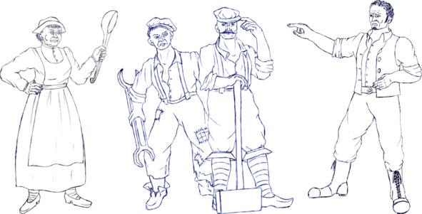 Кухарка, рабочие — простые труженики, подчиняются бригадиру.