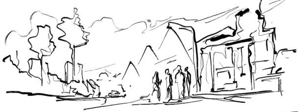 Вечер. Гаражи и автомойка у редкого леса вдоль железной дороги – ни перехода, ни тротуара. Молодые и весёлые (слегка навеселе) юноши выходят из ворот. Все парни с инструментами. В чехлах через плечо гитары, усилители, тарелки от барабанной установки. В руках у каждого второго пиво или сигарета – крутые рок-музыканты, ни дать ни взять. Фонари у редких жилых домов плохо освещают проезжую часть.