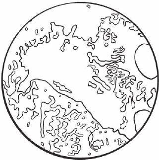 2. Относительно природы красноватых пятен, занимающих бóльшую часть поверхности Марса и сообщающих этому светилу его характерный красный цвет, также согласны все астрономы. Это – обширные материковые пустыни. Вот как описывает их американский астроном Ловелл: