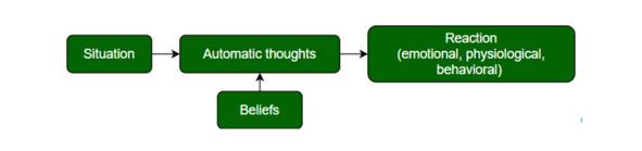 Figure 2. The influence of automatic thoughts and beliefs on a person’s emotional, physiological, and behavioral reaction