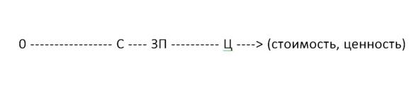 На рис. 1 представлена типовая диаграмма стоимости-ценности производительного труда.