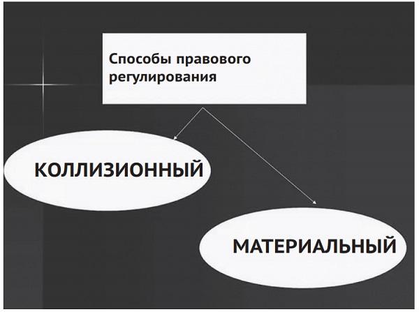 Ключевые понятия: международное частное право, международное публичное право, коллизионное право, имущественные отношения, личные неимущественные отношения, метод правового регулирования, предмет правового регулирования, унифицированные нормы.