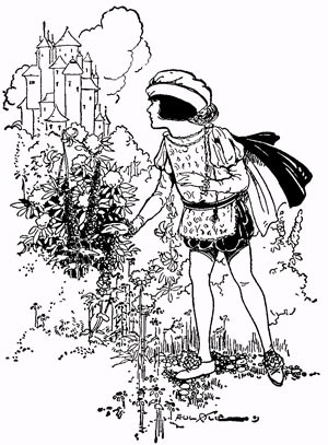 At the end of the hundred years a king's son heard of the castle and the enchanted princess who lay asleep there and determined to rescue her. So he cut his way through the thick prickly hedge and at length he came to the princess. When he saw how lovely and how sweet she looked he fell in love with her and, stooping, kissed her lips.