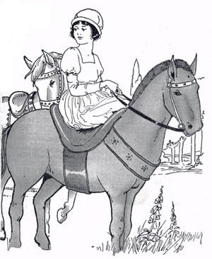 Now, when she was about to mount her horse again, the Waiting-woman said, "By rights your horse belongs to me; this jade will do for you!"