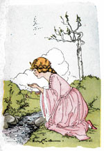 Being very thirsty, the Princess dismounted, and knelt by the flowing water.
