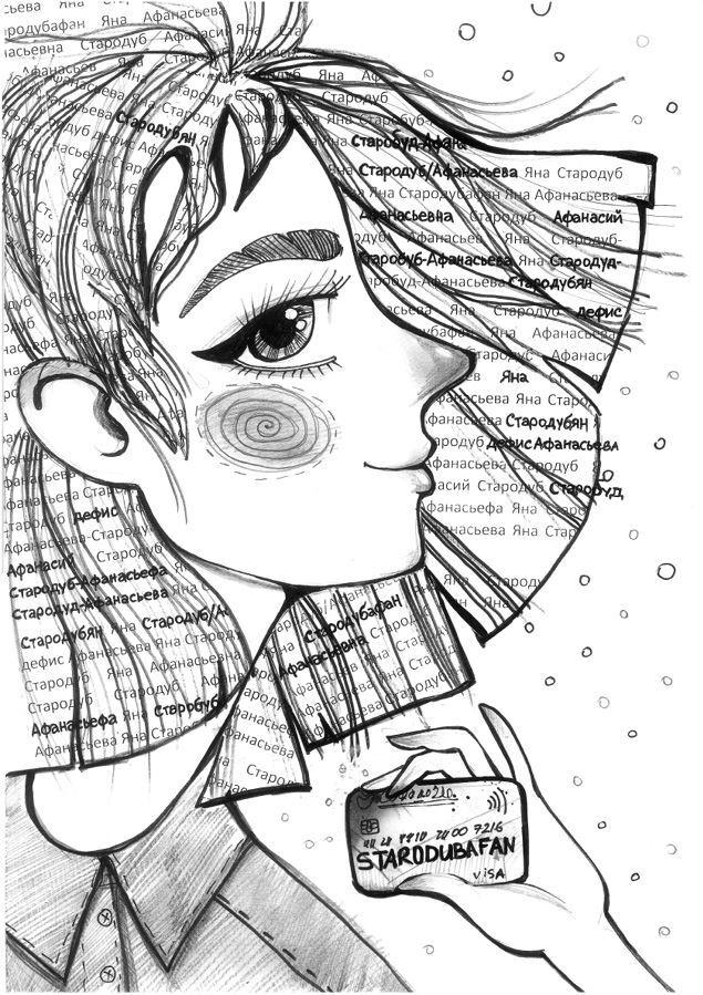За девять лет я стала умнее, теперь произношу чётко и конкретно: «Яна. Юрьевна. Стародуб. Дефис. Афанасьева». Большинство уточняют: «Ну, в смысле чёрточка?». Желающие блеснуть умом спрашивают: «Через тире, то есть?». Желающие блеснуть умом и сообразительностью после вопроса про чёрточку решают, что чёрточка – неважно, в какую сторону чёрточка, и рисуют «/»: то есть получается «Стародуб/Афанасьева», вроде как на выбор – Стародуб или Афанасьева.