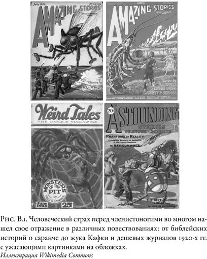 Трудно доверять существам с наружным скелетом. Типичный облик насекомых и других членистоногих способен спровоцировать в человеческом мозге явную реакцию страха1. При этом довольно часто активируются синапсы, связанные с чувством отвращения2. Даже находясь на безопасном расстоянии от этих существ, мы живо представляем себе неприятный хруст, который можно услышать, если на них наступить. Психологи полагают, что подобные переживания у нас врожденные — это выработанная в процессе эволюции реакция на тех, кто может укусить, ужалить или передать заболевание. К тому же на каком-то глубинном уровне мы ощущаем чуждость этих хрупких членистых тел. Вместе с другими млекопитающими мы относимся к позвоночным, а это значит, что мы имеем общую с ними особенность: свои опорные элементы в виде костей мы скромно прячем внутри тела. В техническом же отношении расположение твердых элементов снаружи может быть более успешной эволюционной стратегией: по числу видов членистоногие превосходят позвоночных животных более чем в 12 раз. Но несомненным остается один факт: люди находят экзоскелеты пугающими, особенно потому, что с ними часто сочетаются фасеточные глаза, колеблющиеся антенны и многочисленные царапающиеся ножки. Кинематографисты знают об этом: вот почему Ридли Скотт в фильме «Чужой» создал своих устрашающих монстров на основе насекомых и морских беспозвоночных, а не каких-нибудь щенят; по той же причине самым пугающим существом во «Властелине колец» считается не свиноподобный орк или пещерный тролль, а Шелоб — гигантская паучиха. Даже подготовленные профессионалы порой испытывают по отношению к ним чувство брезгливости. В своей книге «Инфицированный рассудок: Почему люди испытывают страх, отвращение и любовь к насекомым» (The Infested Mind: Why Humans Fear, Loathe, and Love Insects, 2013) профессиональный энтомолог Джеффри Локвуд признался, что прекратил свои исследования (и перешел на кафедру философии) после того, как его накрыла огромная стая саранчи, которую он изучал.