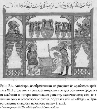 Когда люди нашли и другое применение продуктам, полученным от пчел, наше первозданное пристрастие к сладкому только усилилось. Вскоре сброженный водный раствор меда принес с собой еще одно искушение — вкусный напиток, сочетающий в себе как удовольствие от сладкого, так и довольно сильное опьянение. Ученые считают медовуху одним из старейших алкогольных напитков: ее по-разному варят и потребляют по меньшей мере вот уже 9000 лет7, а возможно, и много дольше. Любители выпить в древнем Китае наслаждались вариантами медовухи с добавлением риса и ягод боярышника, кельты свой напиток приправляли лесным орехом, а финны отдавали предпочтение лимонной цедре. В Эфиопии люди до сих пор испытывают пристрастие к медовухе, сдобренной горькими листьями крушины. Но, пожалуй, наиболее забористой медовухой из всех была та, что появилась в тропических лесах Южной и Центральной Америки, где шаманы майя и других туземных племен изобрели галлюциногенные варианты этого напитка с добавлением одурманивающих корней и коры определенных растений8. Что примечательно, разного рода знахари давно признавали пользу пчел, рекомендуя для лечения самых разных недугов мед, медовуху, восковые мази, прополис («пчелиный клей» — смолоподобное вещество, которое создают некоторые пчелы на основе компонентов почек растений для использования в построении гнезд) и даже пчелиный яд. Когда описания известных снадобий древнего мира в XII в. были собраны воедино в одном томе сирийской «Книги лекарственных средств», то оказалось, что в более чем 350 из 1000 рецептов9 входят продукты пчеловодства. Неизвестный составитель зашел настолько далеко, что называл медовую воду необходимым укрепляющим средством для ежедневного применения (если должным образом смешать ее с вином, а также анисовыми семенами и молотым перцем — по одной драхме и того и другого).