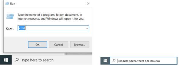 В диалоговом окне вводим название команды cmd и нажимаем клавишу Enter на клавиатуре или кнопку ОК на экране, см рис.