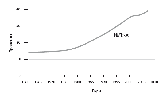 Оказалось, что нововведенная непроверенная низкожировая и высокоуглеводная диета обернулась для нас неожиданными последствиями: показатели ожирения среди населения рванули вверх и с тех пор никогда не падали.