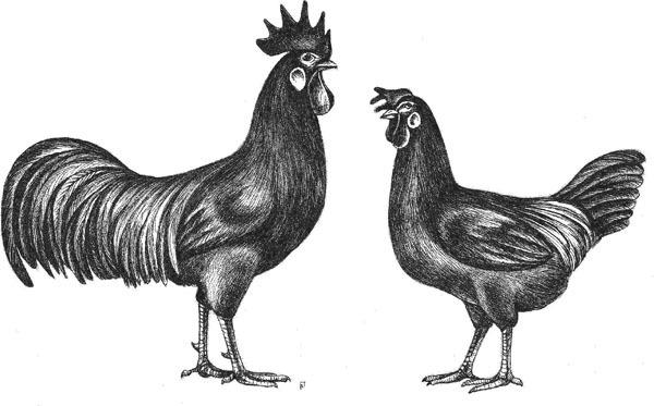Возраст курицы по внешнему виду не определяем, но у петухов выявлена закономерность величины шпор от возраста – к годичному возрасту длина шпоры достигает 1–1,5 см, ко второму году – 2 см и более, к третьему – 4, пятому-шестому – более 6 см.