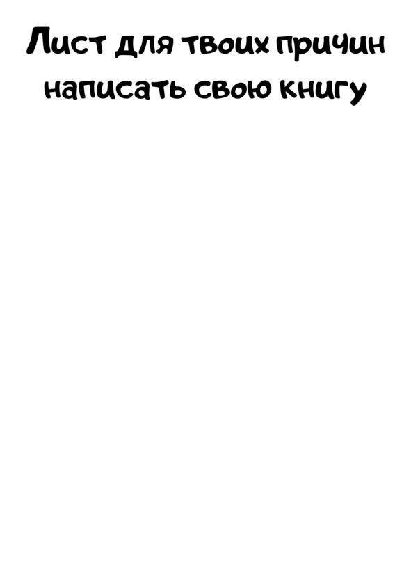 Но мы не будем с тобой останавливаться только на этих пяти причинах. Уверена, ты можешь привести еще десяток аргументов за то, чтобы собраться и наконец издать собственную книгу. Запиши их в свой блокнот — я специально оставлю для тебя чистый лист — и перечитывай, когда в очередной раз задумаешься, а не бросить ли вот это все к черту.