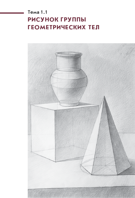 В учебном пособии собраны основные методы и основы изобразительной грамоты по рисунку, разложенные на этапы по каждому заданию. Пособие также включает в себя сборник статей, написанных преподавателями КДДИ РГХПУ им. С. Г. Строганова. Рисунки, включенные в учебное пособие, охватывают полувековой временной период: с 1947 г. (МХПТ им. М. И. Калинина) по 2023 г. (КДДИ РГХПУ им. С. Г. Строганова).