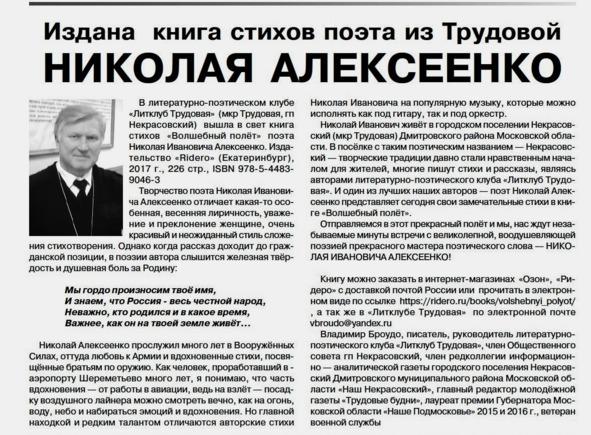 Затем был большой перерыв в творчестве. Снова писать начал уже работая в Шереметьево. Когда увидел в корпоративной газете объявление о конкурсе на лучшее стихотворение о Шереметьево к 55-летию. Оказался победителем и получил первый приз. Так с тех пор продолжаю писать и сегодня.