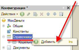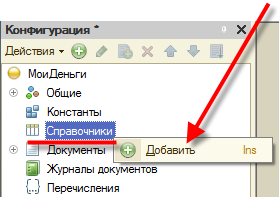 Справочники находятся в ветке дерева, которая так и называется – Справочники. Добавим новый справочник.
