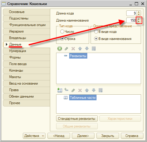 Но перед тем, как перейти на закладку Данные, выполним одну дополнительную относительно справочника Кошельки настройку.